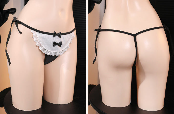 Featuring a frilled lace apron front with dainty bow accents and soft gingham or solid color options, it’s a perfect balance of cute and alluring. The adjustable side ties allow a flexible fit, while the minimal back keeps it lightweight and effortless — a charming finish to your fantasy or everyday collection.
