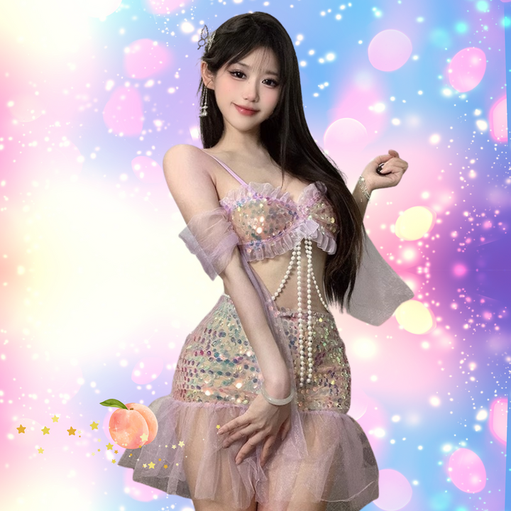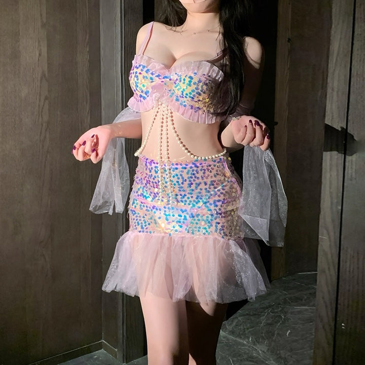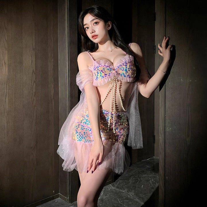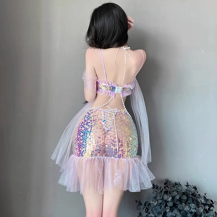 Unleash your inner sea siren with the Gleaming Mermaid Muse Lingerie Set—an enchanting lingerie cosplay that merges innocent charm with irresistible allure. Featuring shimmering pearl chain accents and a delicate princess-style silhouette, this set transports you straight into a fairy-tale fantasy.