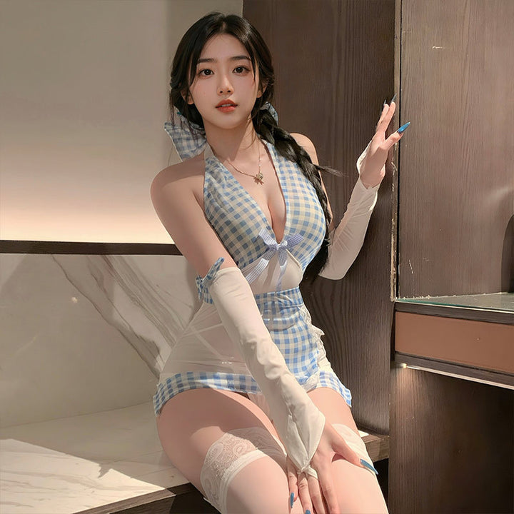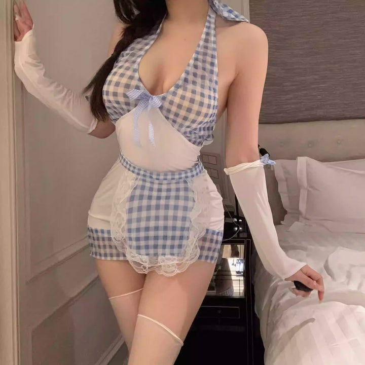 Blue and White Plaid (Dress + Apron + 2 Sleeves + Thong) |