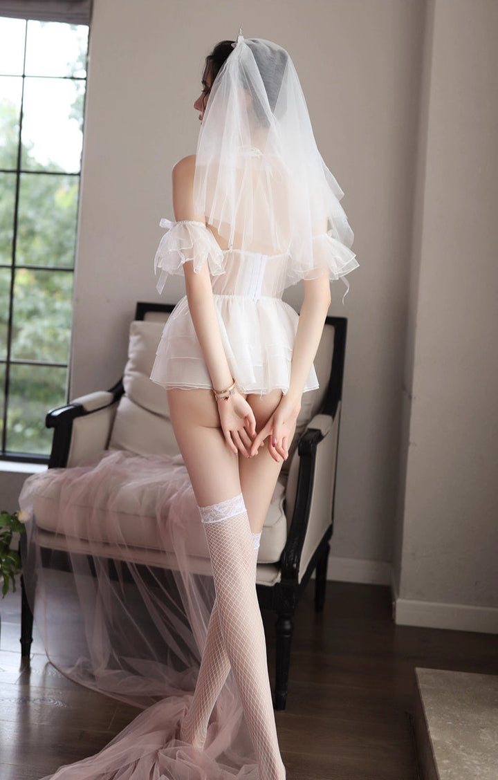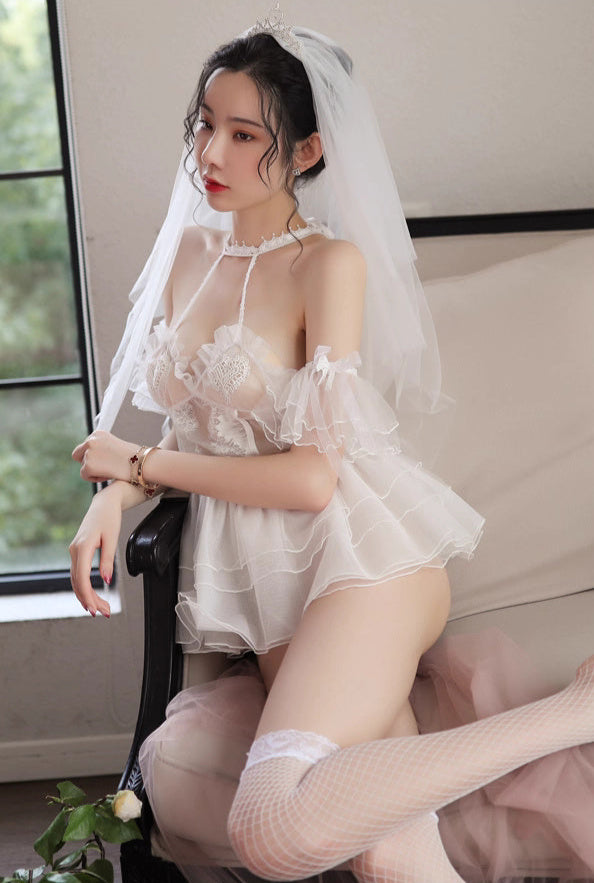 Say "I do" to an unforgettable evening of romance and fantasy with our "Tonight, I Say Yes." bridal lingerie set. Designed for the moments that matter most, this exquisite costume captures the essence of bridal elegance with a seductive twist.