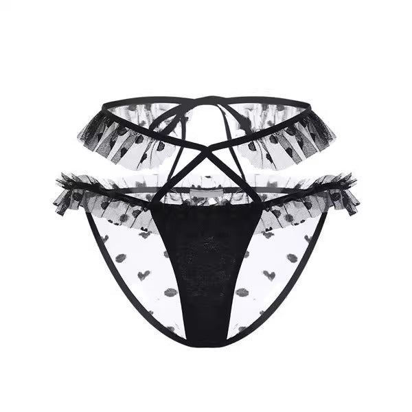Designed with sheer dotted mesh, double ruffle trims, and a graceful crisscross waist, it creates a dreamy silhouette that feels light and effortless. The soft, stretchy fabric moves with your body, making it perfect for both daily wear and special moments when you want a touch of allure.